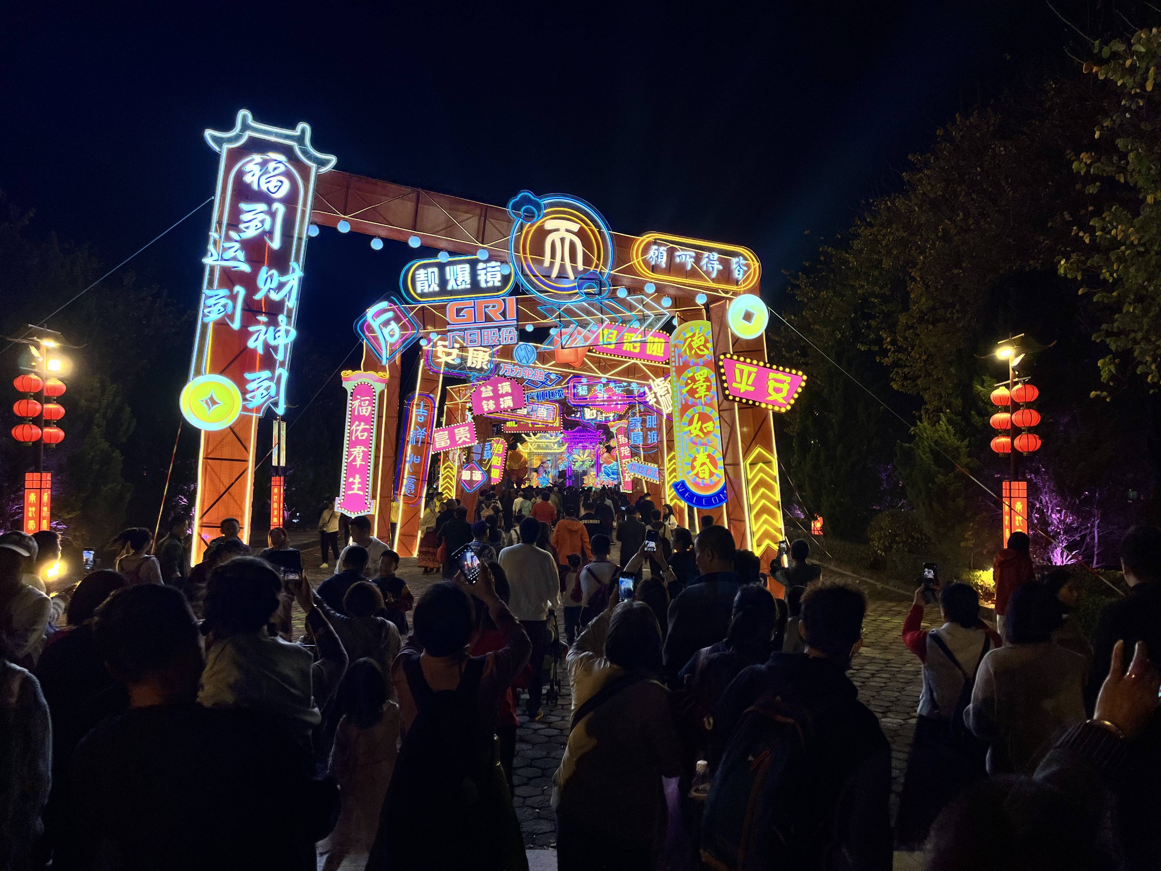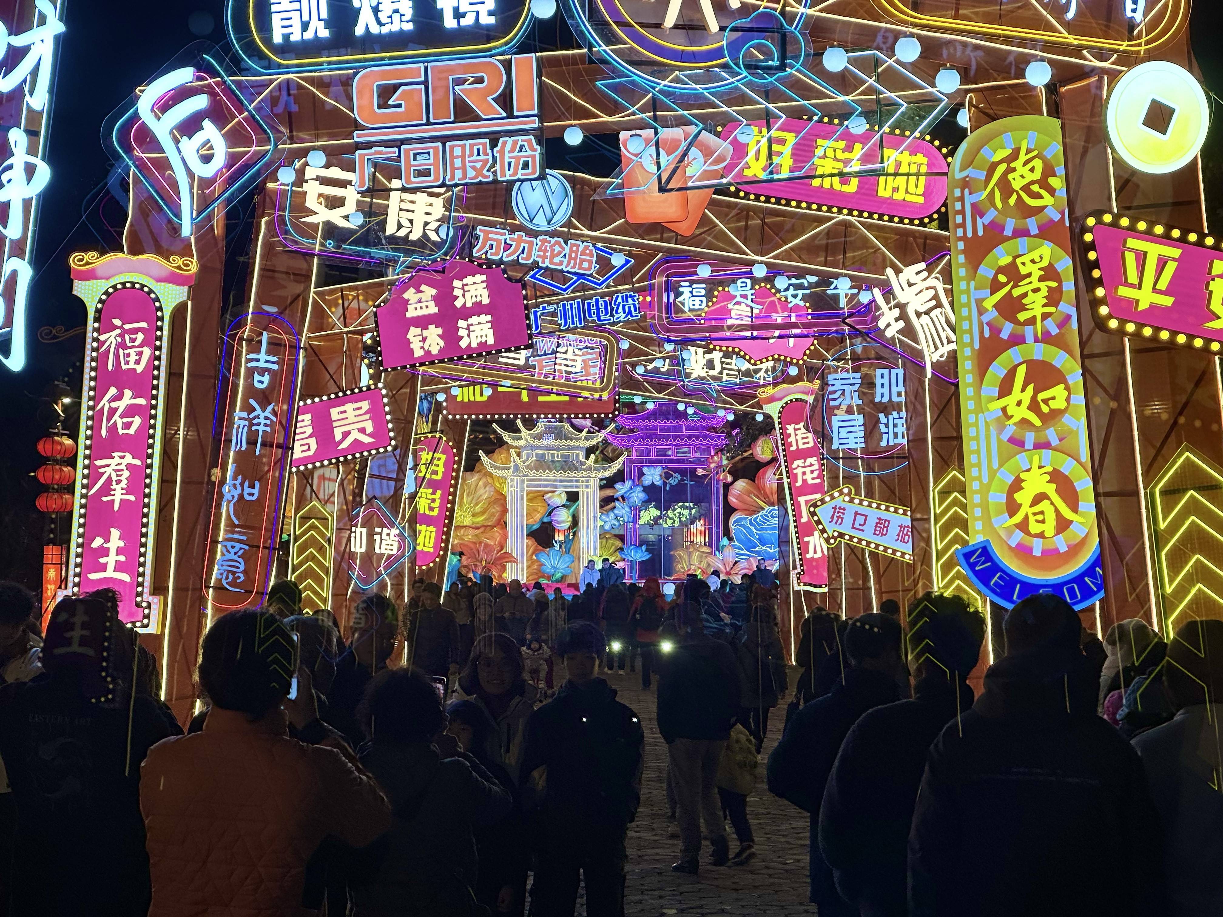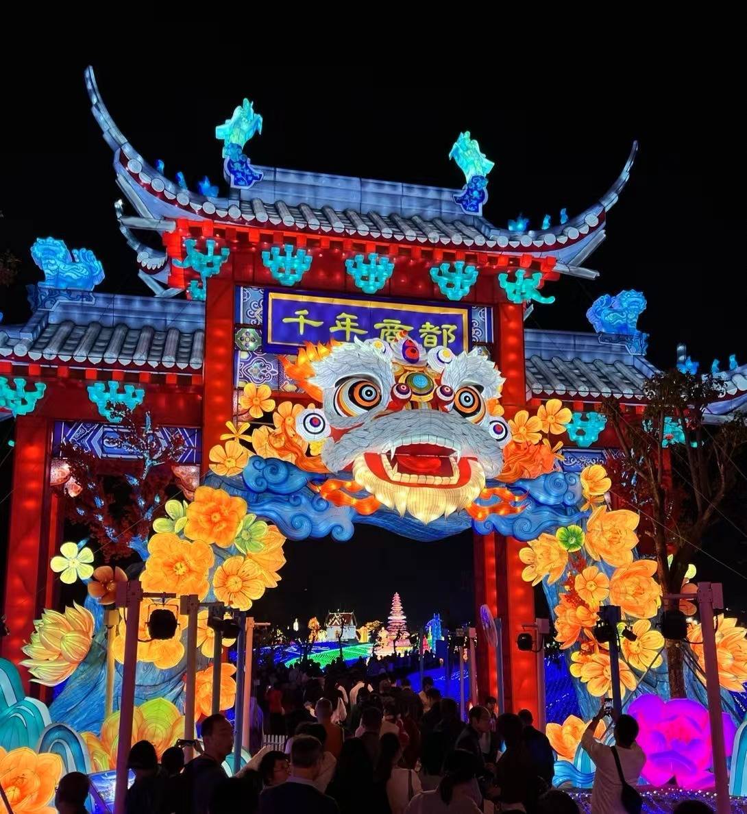 据介绍,2025年粤港澳大湾区灯会自1月22日正式开园,将持续至3月30日,展期共68天。灯会选址蒲洲花园、南沙天后宫景区及滨海公园,以喜(禧)粤大道为轴,按“一轴五园区”布局,占地870亩,主游线超3公里。灯会展示218组灯景和超过10万盏彩灯,融合中国春节、自贡灯会“两大非遗”,融入大湾区城市和“一带一路”国际文化元素,打造了一场规模宏大的光影盛宴。