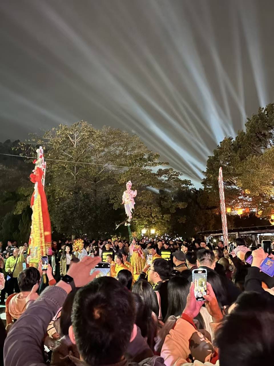 据介绍,春节期间,园区可谓天天有惊喜。大年初一至大年初八期间,园区特别策划了“欢庆团圆年”“神仙人间年”“人间烟火年”三大新春主题巡演,充分展示过大年的民俗非遗。
