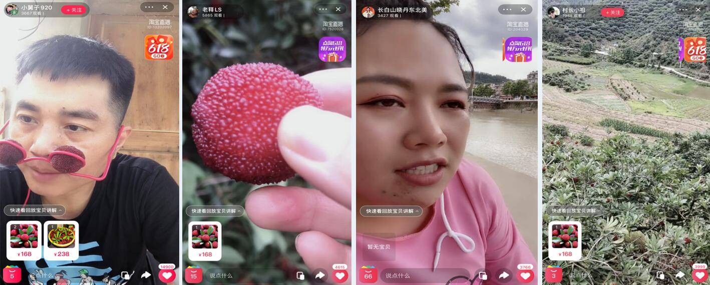 图:仙居杨梅节电商直播兴产惠农 部分参与主播直播截图