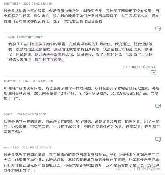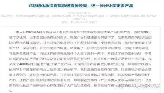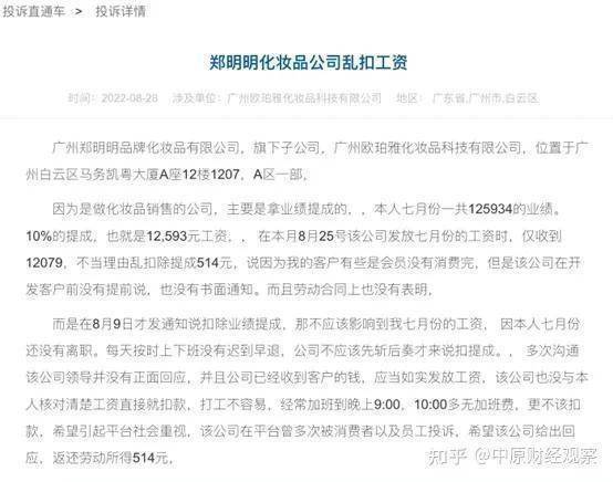 除了强迫加班,压榨员工外,郑明明品牌化妆品还被曝虚假宣传,套路、欺骗消费者等问题。