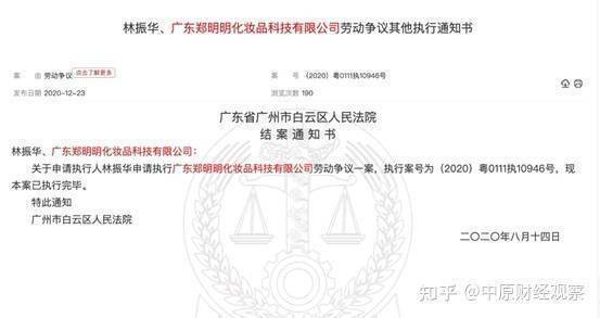 无独有偶,2020年广东郑明明化妆品公司就曾因劳动争议成被告。后被前员工申请强制执行,执行金额为2201元。