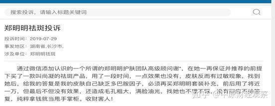 在华声在线《湘问·投诉直通车》栏目,记者发现关于郑明明品牌化妆品及广东郑明明化妆品科技公司的投诉接近20条,内容涉及虚假宣传、误导消费、套路欺诈、强迫交易,压榨员工等内容。