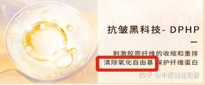 在郑明明润妍抗皱套组里宣称该产品含有“抗皱黑科技—DPHP,能刺激胶原纤维的收缩和重排,清除氧化自由基,保护纤维蛋白”。