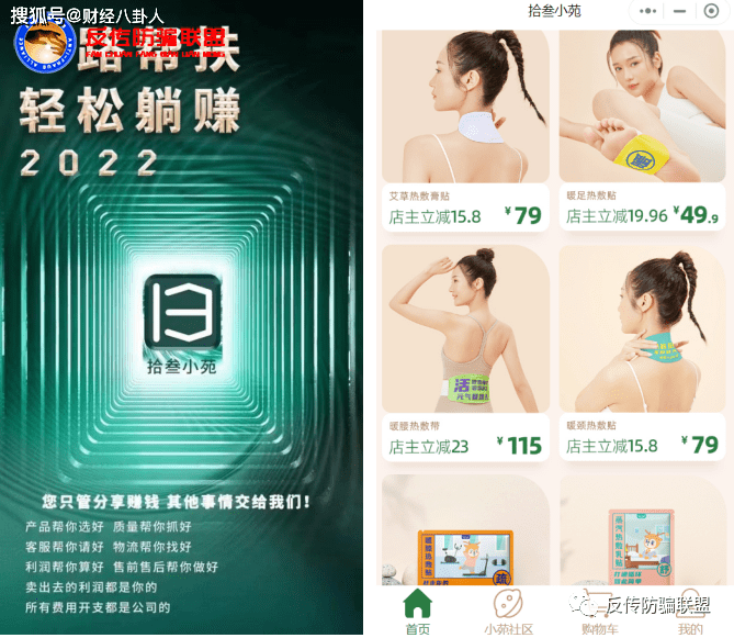 但据代理商透露,拾叁小销量最为火爆的并不是其小程序中的各种热敷类的产品,而是一款名为“传世汉芳紧致宝”的减肥产品。据反传防骗联盟了解,“传世汉芳紧致宝”曾被多家媒体质疑虚假宣传及涉嫌传销,那么,拾叁小苑与传世汉芳有何关联?运营模式又该如何解读呢?
