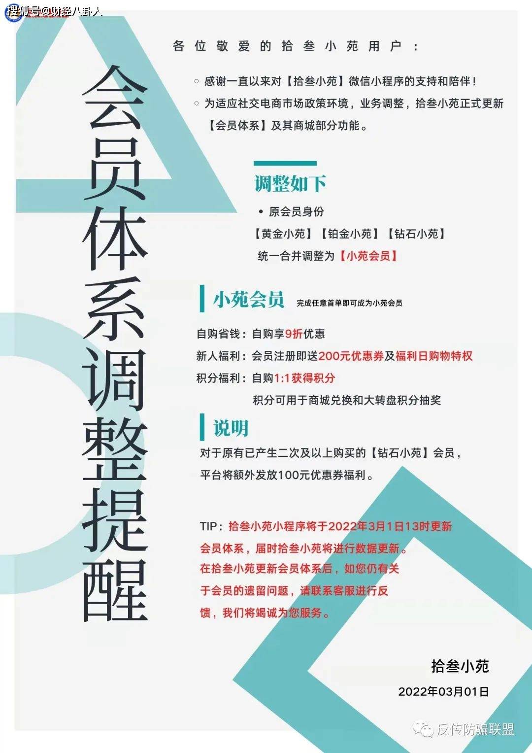 3月1日,拾叁小苑平台的微信小程序发布了一则“提醒”:为适应社交电商市场政策环境,业务调整,拾叁小苑正式更新会员体系及其商城部分功能。将黄金小苑、铂金小苑、钻石小苑统一合并调整为“小苑会员”。那么,调整后的拾叁小苑就真的没有多级代理、合法合规了吗?