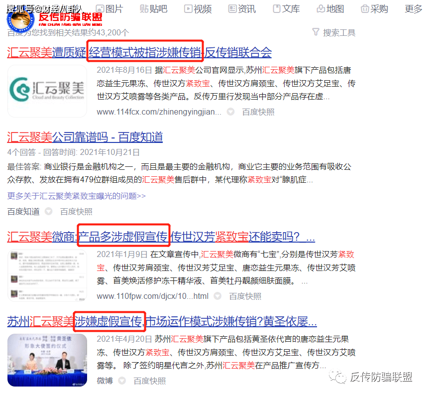 经查,自2020年以来,就有媒体陆续曝光汇云聚美产品虚假宣传、运营模式涉嫌传销等违规行为。