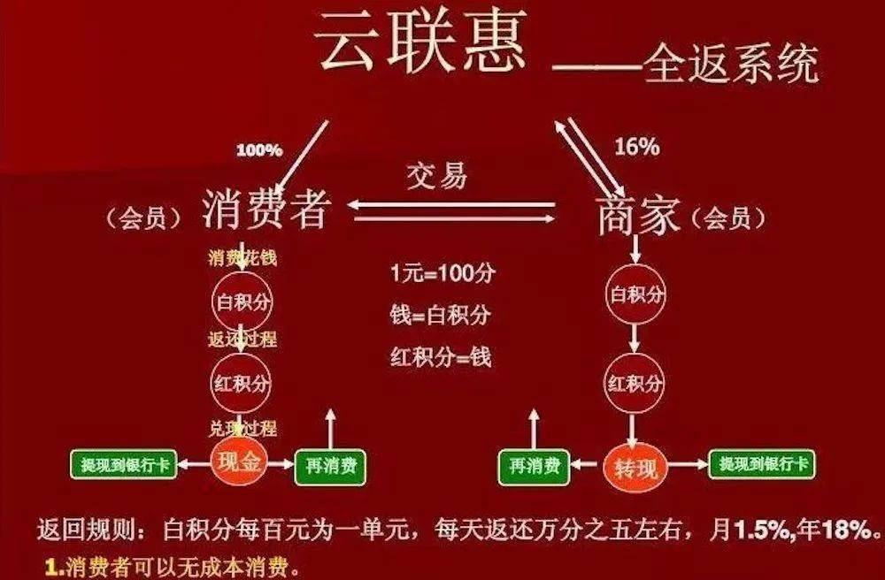 在整个云联惠的返利逻辑链条中是不创造任何新的社会财富的,资金没有任何可再生性。