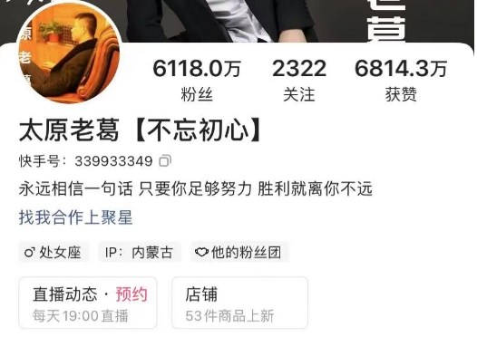 这个太原老葛并不是太原人,而是因为在太原发展而得名,目前快手粉丝 6000 多万。