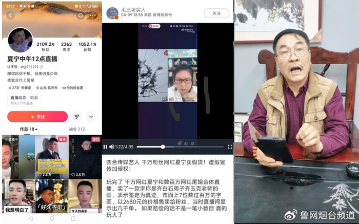 2024年4月4日,夏宁和数百万粉丝网红尾姐合体直播,向观众售卖一幅齐白石弟子齐玉克的龙游天下水墨大家族画作,并且现场连麦所谓的“专业人士”鉴定其为真迹,引发粉丝们追捧。最终,这幅市面价值超过百万的画作仅以2680元的价格出售。
