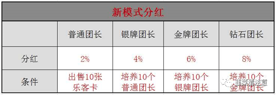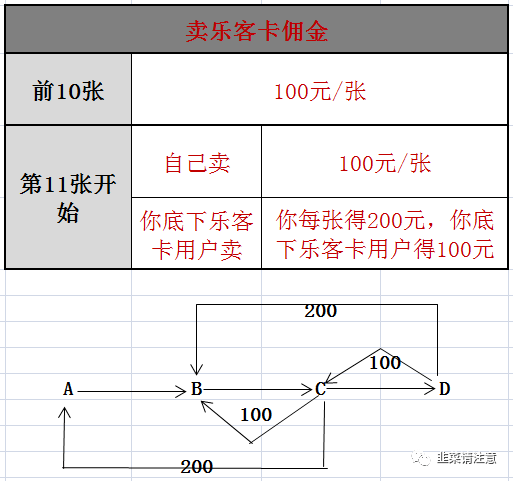 “成功售卖10张乐客卡就可以成为团长,这十张乐客卡每张获得100元返利,发展的所有乐客卡会员做项目赚的钱就有分红,发展的会员如果也想成为团长,以此类推:他们成为团长后售卖一张卡,你自动赚200元。”
