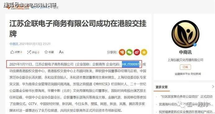 举报人提供了东方财富网财富号的一篇报道,江苏企联成功挂牌香港股权交易中心(企业简称:企联商务 企业代码:HK.IT00097),并表示这也是假的。