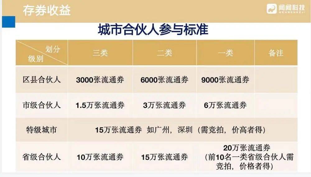 分红闻商:闻商存入1000张广告券(满足存券条件 2022年9月1日之后,历史累计直推5名通过线上线下购物获取两万广告值的用户或兑换打赏券满两万的线下店商家,有3000名额。可获权益一:获得1万数据积分奖励(上市后的法人原始股);权益二:参与服务费的现金日分红 (参与到区县合伙人线上服务费分红。