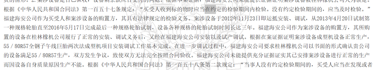 2015年建成投入试生产,后历技术原处于调试状态,或可由一项买卖合同纠纷可查。据裁判文书网(2020)桂民申1297号文件显示,桂林橡胶机械有限公司曾为海安橡胶提供销售规格型号为37.00R57~55/80R57巨型全钢子午线轮胎二次法成型机壹套半。经安装调制后2016年5月17日完成最后一种规格轮胎试制,设备各种规格的轮胎试制时间长达三年。后海安橡胶提起诉讼,最终败诉。