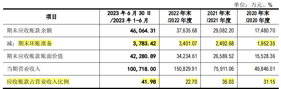 虽然截至2023年6月30日公司1年以内的应收账款余额占比较高,但公司仍然面临因客户经营情况恶化或市场异常波动导致应收账款回款发生困难的情况。各期期末坏账准备金额分别为1952.35万元、2492.68万元、3401.07万元和3783.42万元。截至2023年6月30日,期后回款金额占比为51.71%。