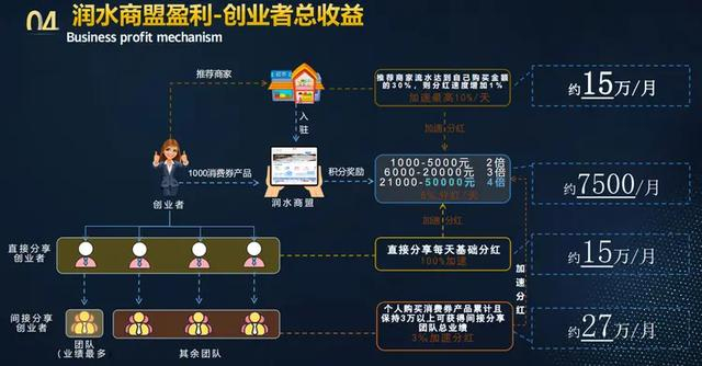 通过讲师介绍,记者得知消费者还可以通过扫描二维码注册的方式发展自己的“下线”人员,“这种模式可以无限分裂式发展,只要个人消费券产品累计或者一次性达到3万元成为润水公司合伙人,就可获得所有“下线”消费者的总体消费金额千分之三的分红。”讲师表示,每直接推荐一位合伙人即可获得15%的消费金额的分红,间接可获得5%消费金额的分红,通过直推方式吸引消费者完成消费后,每日还可固定获得等数值的分红,例如推荐者通过直推的方式吸引一位‘下线’消费者购买40000元人民币的商品,推荐者即可每日获得200元固定收益。依据相关法律法规,通过发展人员发展其他人员加入,形成上下线关系,并以下线的销售业绩为依据计算和给付上线报酬的方式可以定义为传销。