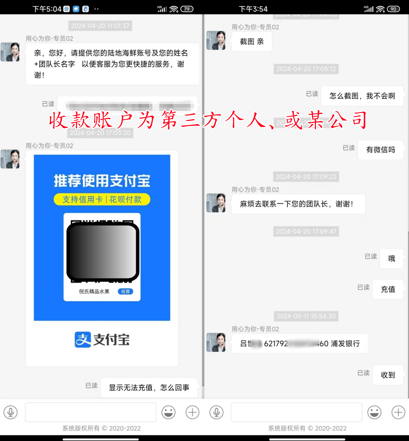 第二,,收取款账号为第三方,充值必要联系客服,由客服提供充值账户,充值账户有个人、有公司等;