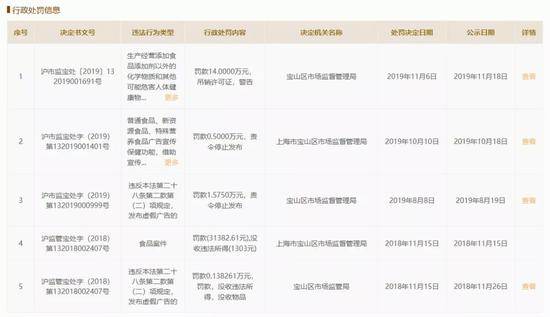 除上述处罚以外,自2016年2月至2019年10月,蜂了时尚科技(上海)有限公司曾因虚假宣传等违规行为被处罚6次,累计被罚款超过20万。