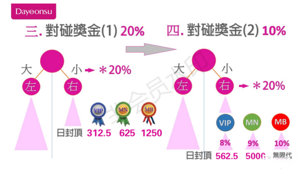 而“多燕瘦维密双排王”市场运作模式则是:奖励实时发放,分为2个部分,90%进入现金积分,10%进入复购积分,现金积分可以转账,购买产品与提现,复购积分只能用来购买产品。平级奖励:奖金比例为:20%。