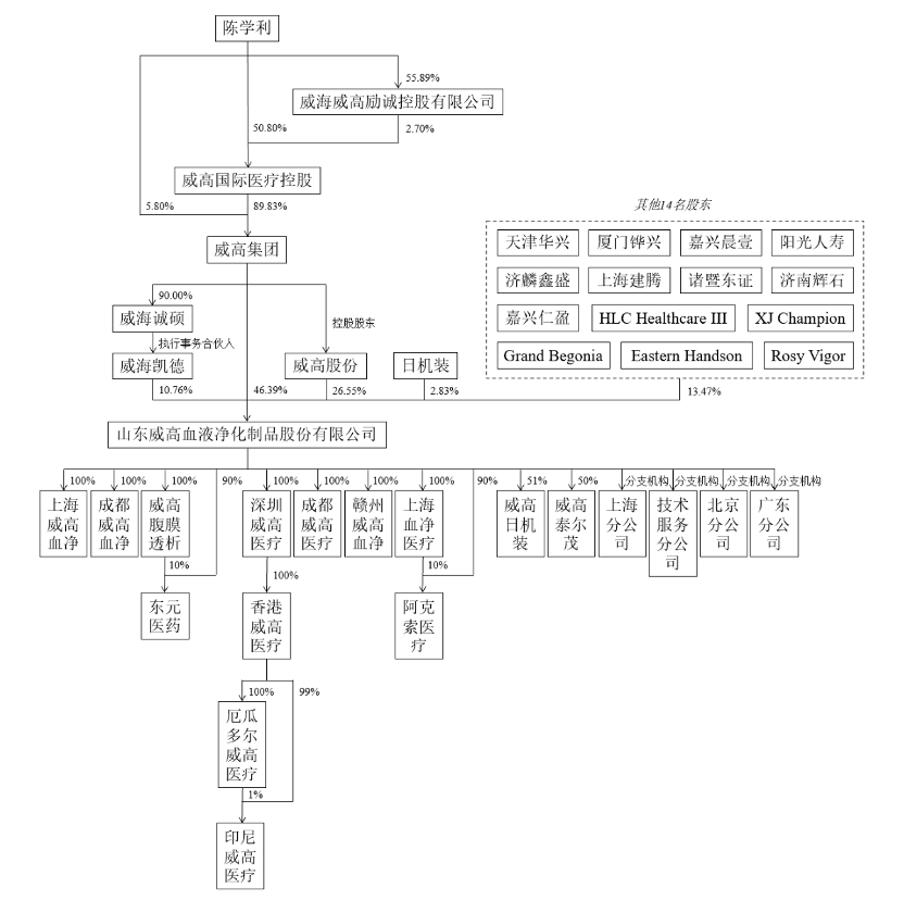 截至招股书签署日,陈学利通过威高集团、威高股份和威海凯德合计控制威高血净83.70%的股份,系公司的实际控制人。若本次IPO成功,威高血净将成为陈学利实控的第四家上市公司。