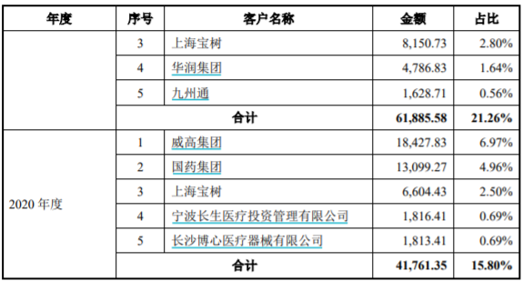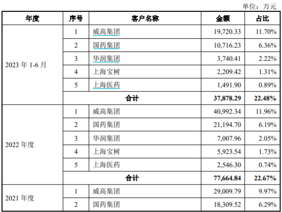 报告期各期,威高血净的第一客户是其控股股东“威高集团”。2020年-2022年及2023年上半年,威高集团分别为威高血净贡献收入1.84亿元、2.9亿元、4.1亿元及1.97亿元。