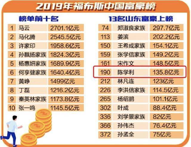 图片来源:半岛网《2019年福布斯中国富豪榜发布 13位山东"豪汉"上榜》