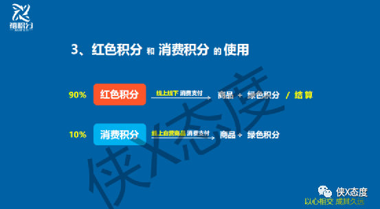 据平台推广资料介绍注册实名后通过消费购物,可以获得等值的绿色积分,其中90%将按一定比例每天释放成红色积分,红色积分可用于提现、消费;10%直接转换为消费积分,可以用来购物消费。如果成为平台联盟商家,参与用户在该商家消费后,除了可以获得消费额84%现金收益外,还可以获得16%的绿色积分同样按比例转换释放。