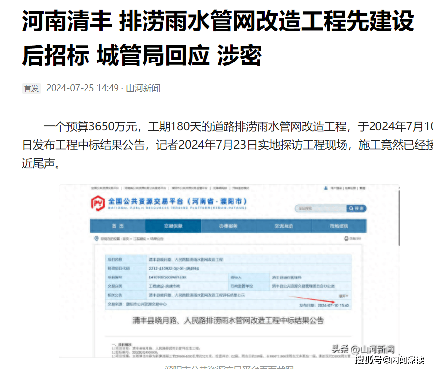 按照正常的招标流程,从项目公示到中标结果公告,再到签订合同和施工进场,需要一定的时间来确保各个环节的合法性和合规性。然而,清丰县排涝工程在中标公告发布前就已基本完工,这一异常现象显然违背了《招标投标法》的相关规定。