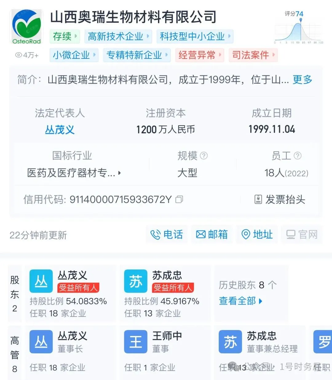 权威材料显示,山西奥瑞公司早期是一家国有研究机构(中国某某研究院)成立,经营范围是“同种异体骨植入性材料”的研发、生产、销售。