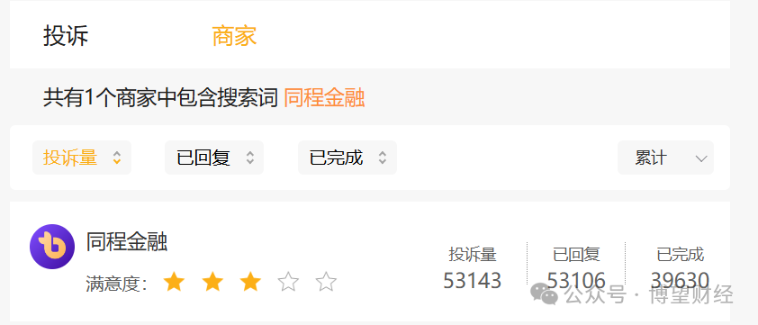 伴随着金融版图的快速扩张,同程金融的投诉量也一直居高不下。