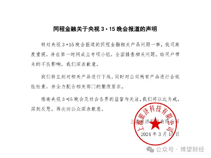 值得一提的是,截至目前,除了最初的申明之外,同程金融从未公布任何整改进展,整改的真实情况依然要打上一个问号。