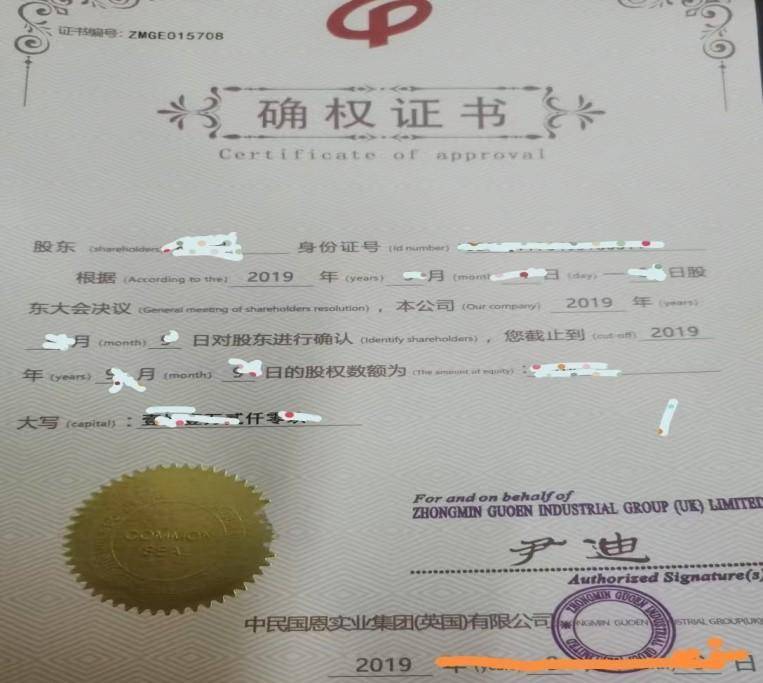 记者的确看到一份投资人手中持有的,2019年由尹迪签发的确中民国恩实业集团(英国)有限公司的“确权证书”,据持有人介绍,现在已不再发“确权证书”,“融生活”平台上的福祉红包里的数字就是股权。根据《最高人民法院关于审理非法集资刑事案件具体应用法若干问题的解释》第六条的规定,未经国家有关主管部门批准,向社会不特定对象发行、以转让股权等方式变相发行股票或者公司、企业债券,或者向特定对象发行、变相发行股票或者公司、企业债券累计超过200人的,应当认定为《刑法》第一百七十九条规定的“擅自发行股票、公司、企业债券"。中民国恩是否涉嫌“擅自发行股票、公司、企业债券罪"?只有司法机关能够定性。