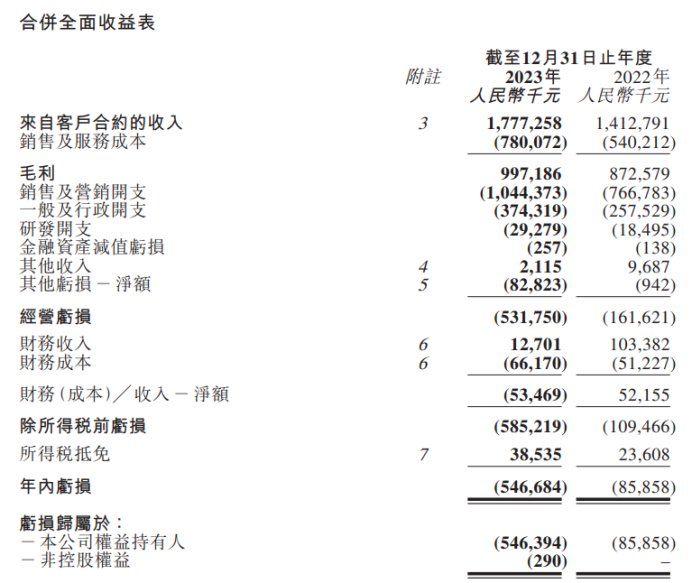 仅销售和营销费用一项,雍禾医疗在2023年就达到了10.44亿元,较上年同期增加了约2.78亿元,增幅36.2%;一般及行政开支则增加了1.17亿元,增幅45.5%;通俗来说去年雍禾医疗花在销售、广告营销以及人力、管理方面的成本较上年度增加了不少,所以导致全年度亏损加剧。