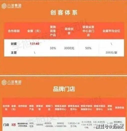 花费30000元可成为品牌门店,门店会赠送装修补贴2000元现金,销售产品利润在50%左右,推荐一名创客直接奖励3000元,推荐门店奖励8000元+8000BL(这BL币是八凌集团另外的版块),推荐一个区县招商服务中心奖励9000元+18000BL,推荐区县运营中心,市级运营中心等都有收益,其他收益还包括项目孵化、股权、短视频收益等。