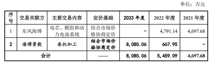此外,海博思创还在2023年新增了一名重大关联采购方,即海博景能。该公司2022年和2023年向海博景能的委托加工金额分别为667.95万元和8085.06万元,分别占委托加工比例的16.83%和52.18%,交易频次愈发集中。