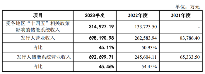 海博思创在回复函中透露,《关于加快推动新型储能发展的指导意见》发布后,2022年和2023年受各地区政策影响的储能系统收入高达13.37亿元和31.49亿元,分别占其储能系统收入的54.45%、45.46%,带动经营业绩持续增长。