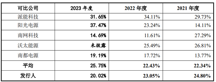 然而,海博思创的毛利水平,却与井喷式增长的收入规模不尽相同。2021年、2022年和2023年(即“报告期”),在收入实现超10倍增长的情况下,该公司储能系统业务的毛利率分别为24.80%、23.05%和20.02%,呈持续下滑趋势。