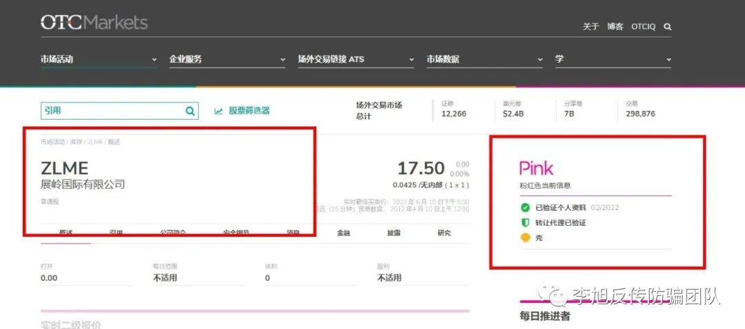 我们相关网站上也找到了展凌国际“上市”的展示信息,显示为OTC粉单市场挂牌。