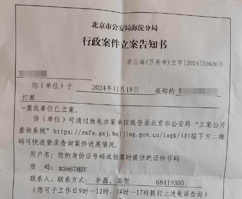 目前袁先生已经报警,北京市公安局海淀分局万寿寺派出所已对此事立案处理。