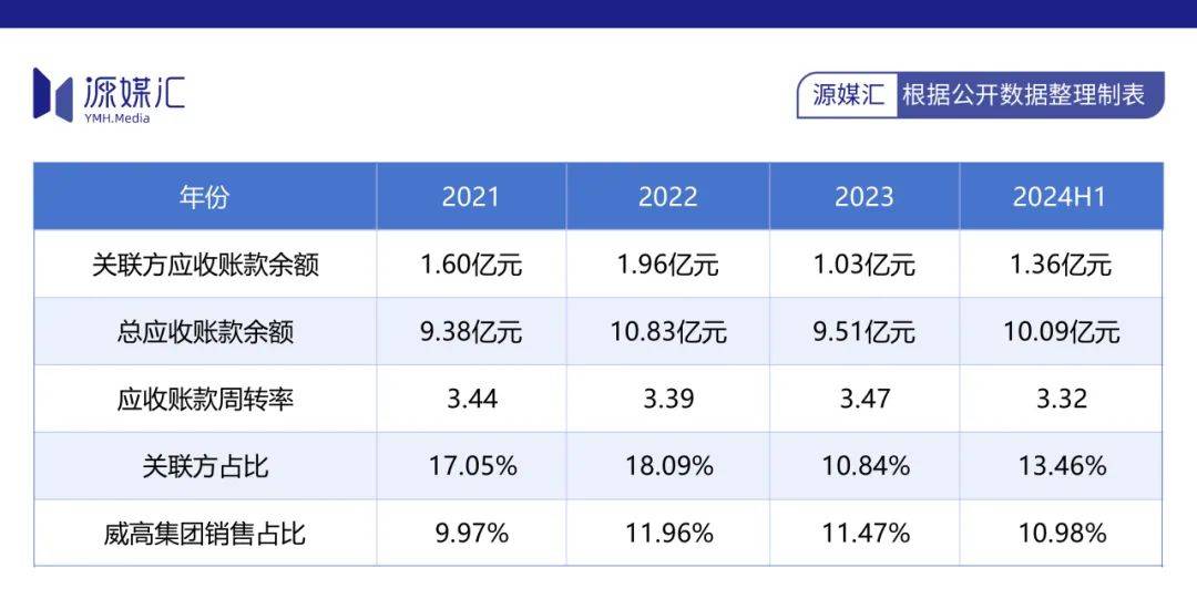 2024年上半年,关联销售占比最大的威高集团下降0.49%,但应收账款余额中关联方占比却不降反增,升至13.46%。同时,威高血净的应收账款周转率也有所下滑。这一数据也从侧面反应了其回款周期被拉长,威高血净或存在通过放宽信用政策调节收入的可能。