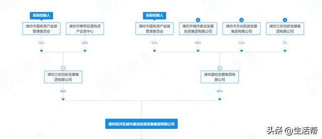 通过股权穿透来看,潍坊经济区城市建设投资发展集团有限公司股东为潍坊三农创新发展集团有限公司,持股比例60%;潍坊国控发展集团有限公司,持股比例40%。实际控制人为潍坊市国有资产监督管理委员会。