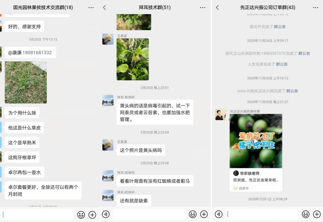 “就是很多用户这个星期买杀红蜘蛛的、下个星期遇到白粉(病),他其实很喜欢出现什么问题了,(直接)拍一张照片就过来问。我们一查看他的订单就告诉他用你们已经买的这种药就可以了。我们的理念就是要宁可少推也不要多推的,因为最小量的一份,有备无患就可以了。在能够尽我们所能(的情况下),帮客户最短的时间内,精准地解决掉病虫害的这些问题。”